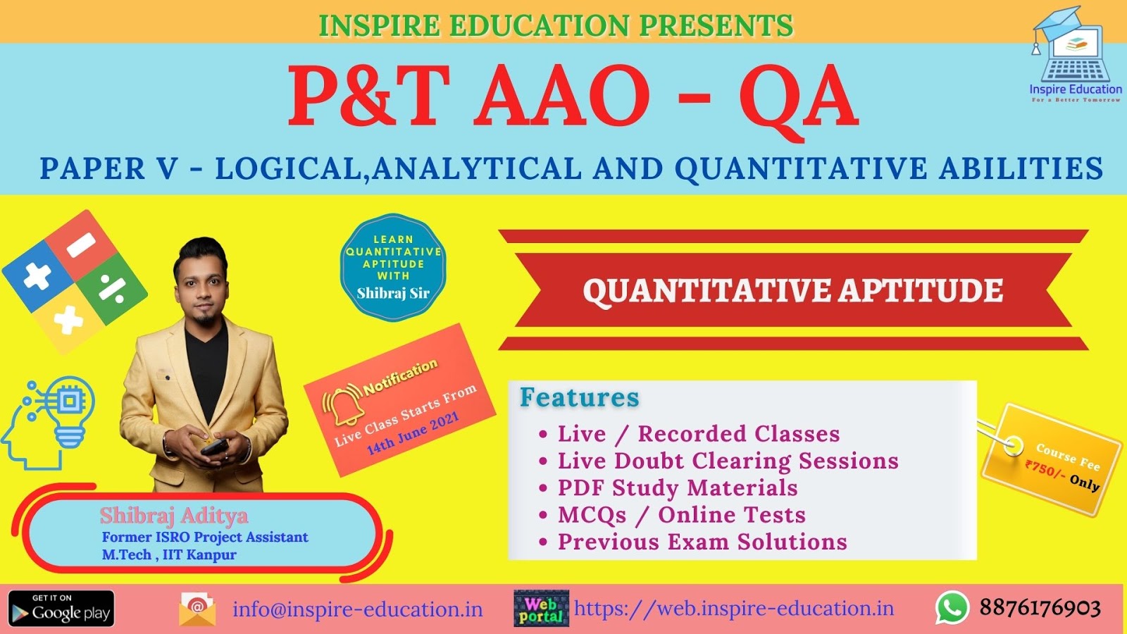 Live Classes on AAO Exam Paper V PART A - 'AAO - Quantitative Aptitude ' starting from tomorrow (14-06-2021) 06:30 PM.